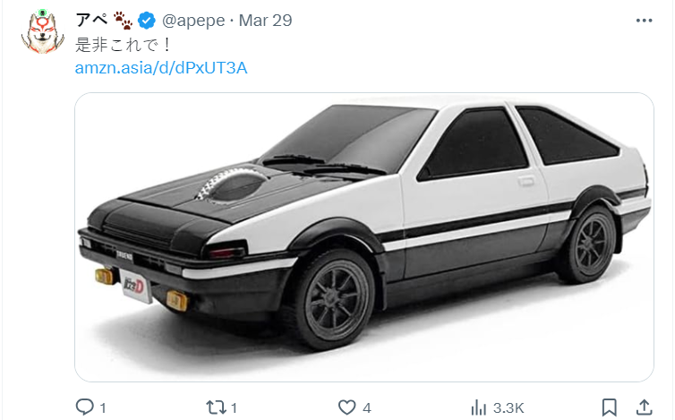 已經有網友敲碗 AE86 了,畢竟也出過滑鼠 XD。