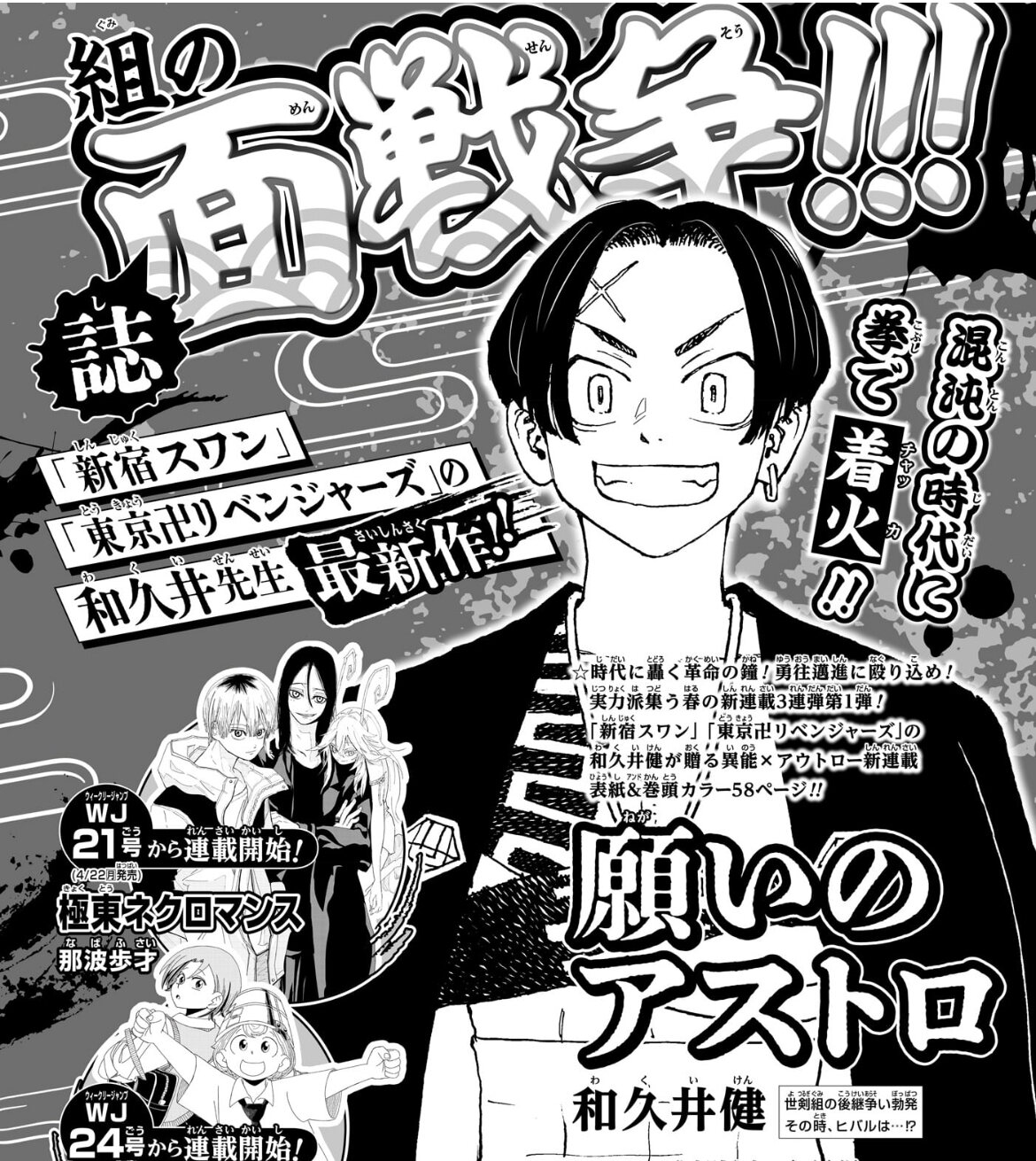 以《東京復仇者》為人熟知的漫畫家和久井健,在東京復仇者完結約一年半的時間,在今日 ( 4/8 ) 公布了全新作品《願いのアストロ》,也是睽違一陣子的漫畫新作,並會在《週刊少年 JUMP》連載,於 4 月 15 日發行的 20 號週刊啟動。