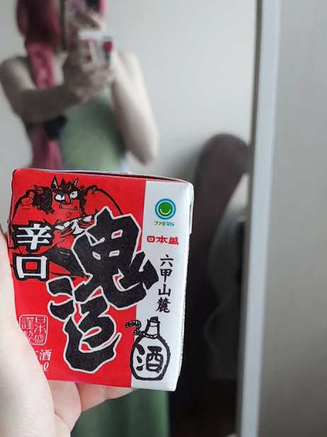現在定居在日本的她,要取得這個招牌的「鬼ころし(鬼殺)清酒 」 當然不難,也自嘲拍照時可沒喝醉唷 ( ? )