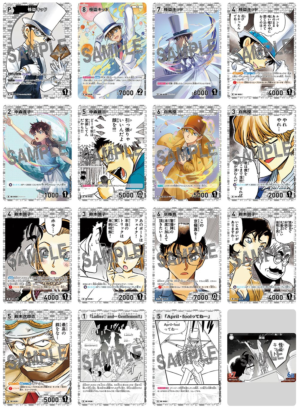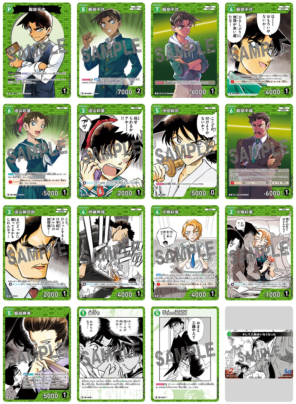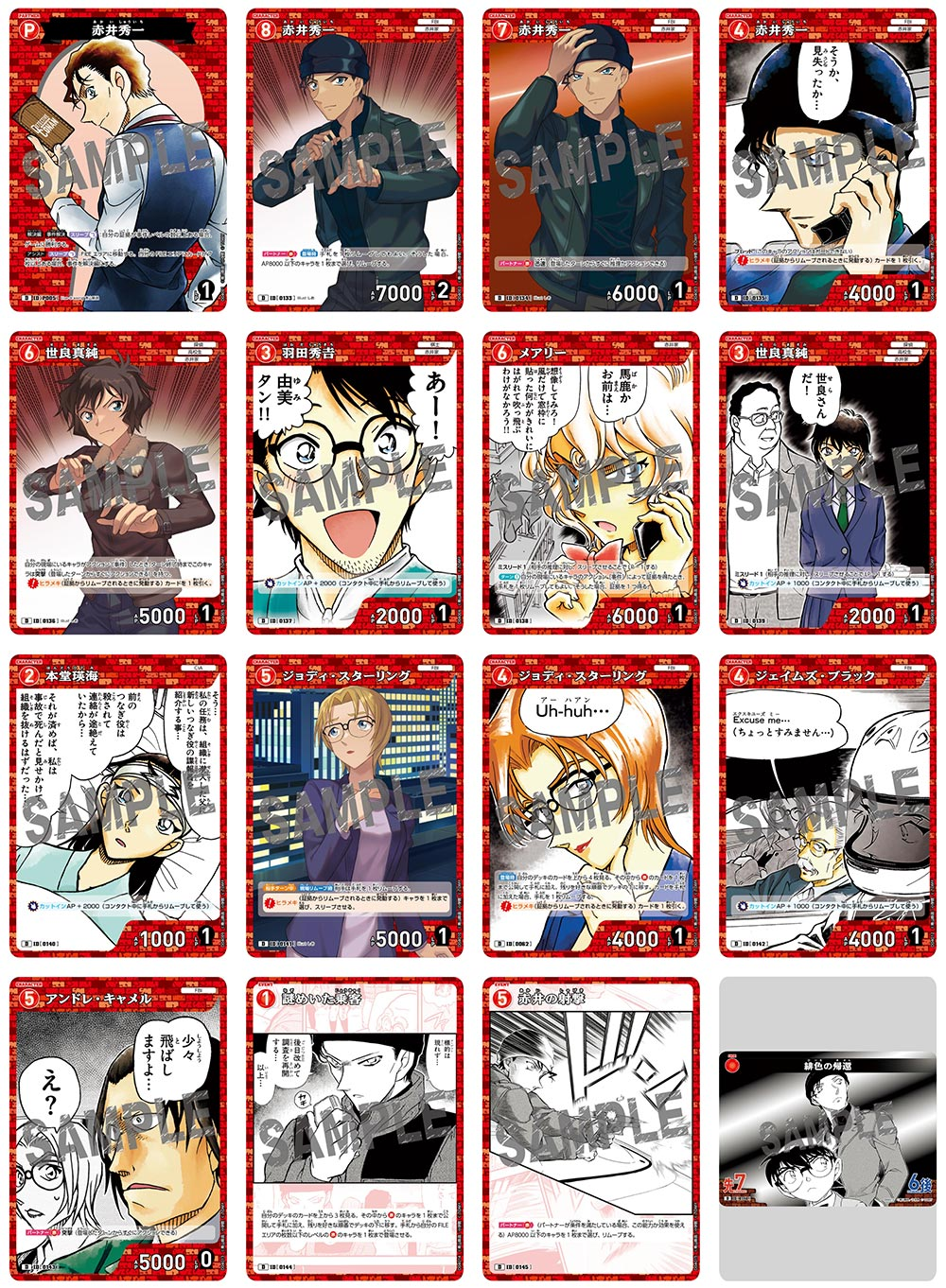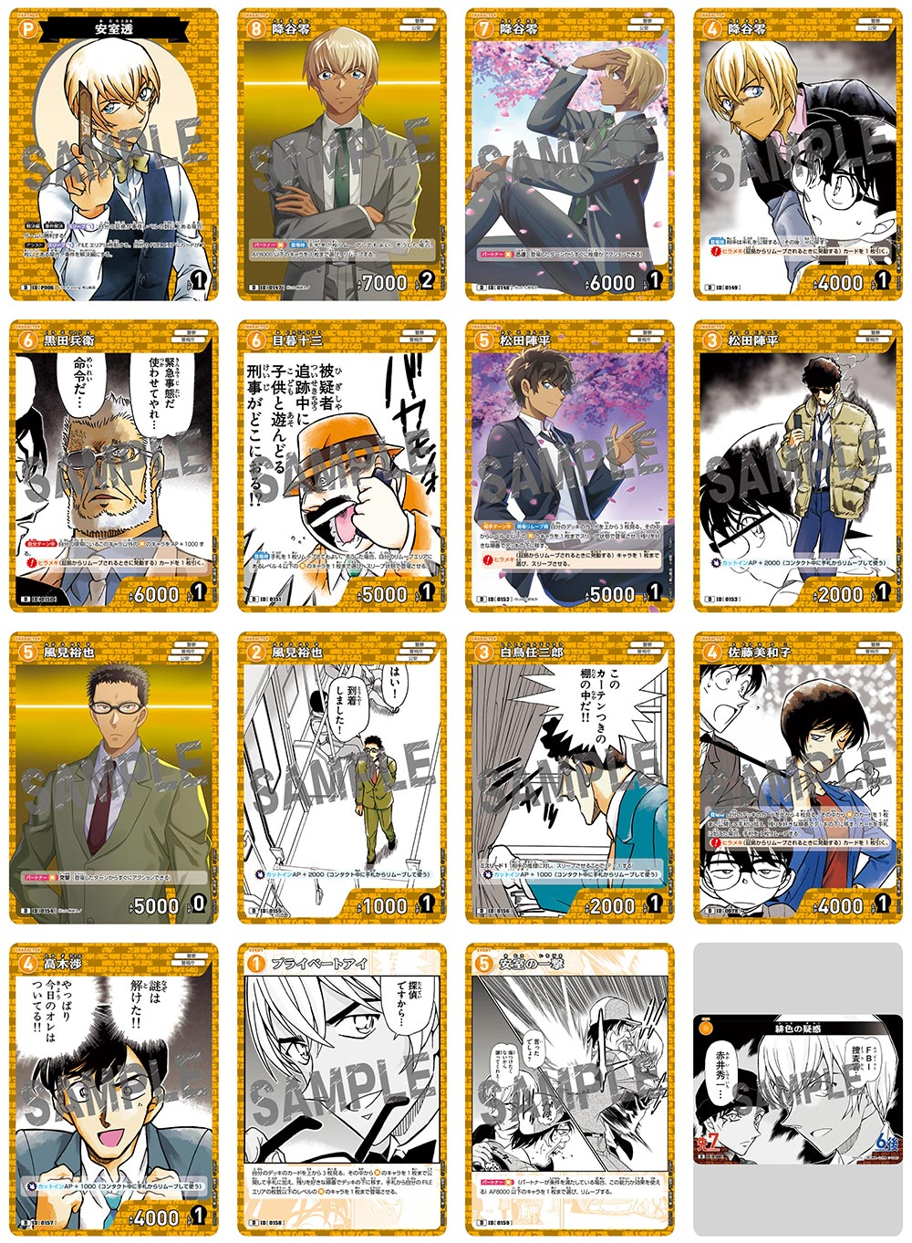 首次推出的起始卡牌套組分成 : 江戶川柯南、服部平次、怪盜基德、赤井秀一與安室透五位,可說是作品中最具人氣的五位男角色,當作起頭的招牌也不為過,售價為 1,320 日圓。