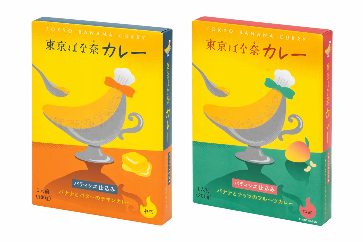 「東京香蕉咖哩」顧名思義,由品牌專門從事西式點心的糕點師調製而成,使用品牌招牌的香蕉為特色,來凸顯濃郁口感的嶄新咖哩口味。目前已有兩種口味: 香蕉奶油雞肉咖哩 & 香蕉堅果水果咖哩。