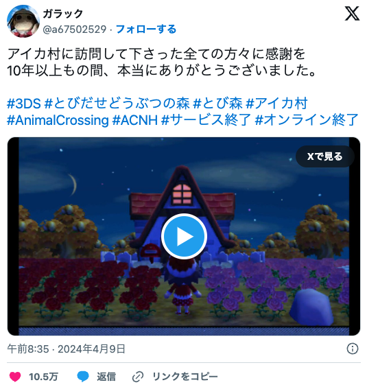 「ニンテンドー3DSソフトおよびWii Uソフト」のオンラインプレイサービスは本日4月9日(火)午前9時をもって終了いたしました。