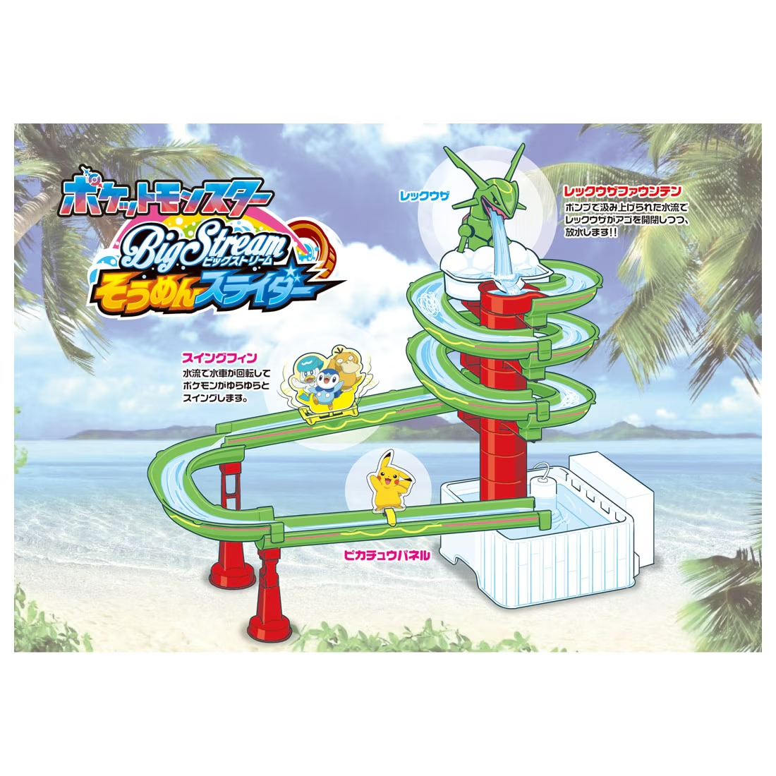 由日本 TAKARA TOMY 發行的「涼麵水樂園 (そうめんスライダー) 」流水麵機商品發表了《寶可夢》主題的最新震撼作「烈空坐造型流水麵機」(レックウザ型そうめんスライダー)!預計將於 2024 年 6 月 1 日開始發售,建議售價為 14,960 日幣(含稅)。