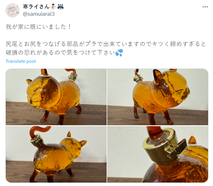 最近日本 X 上出現了一個奇怪的東西,有網友在 Amazon 上找到了一款「貓咪造型威士忌瓶」,看起來一臉憨憨的貓咪瓶身搭配獨特設計,吸引不少人關注,直喊想買來試試。