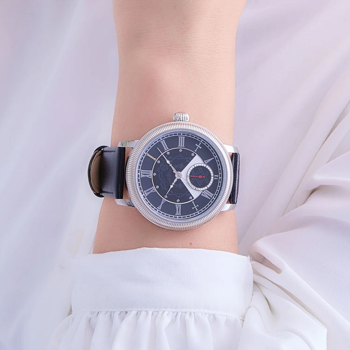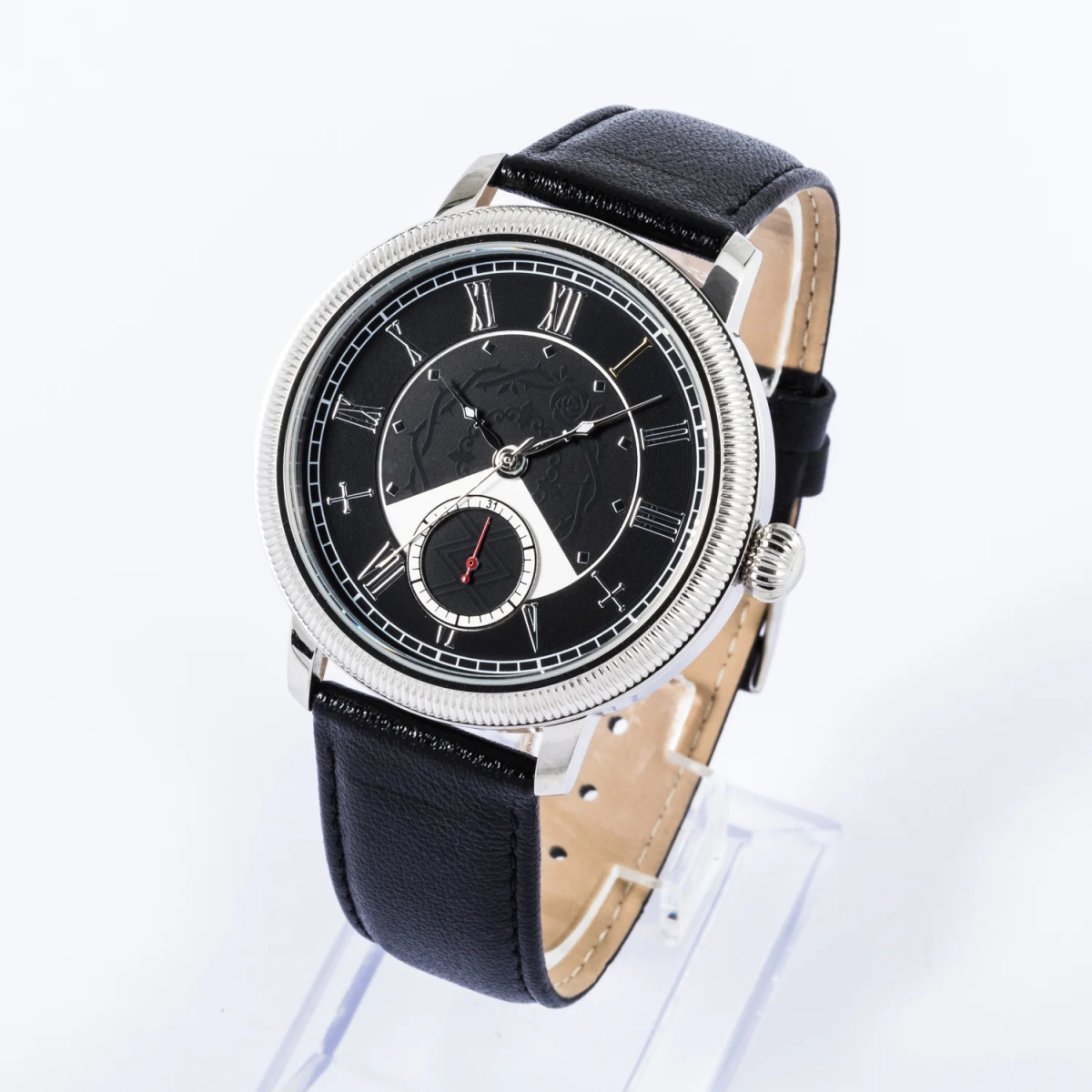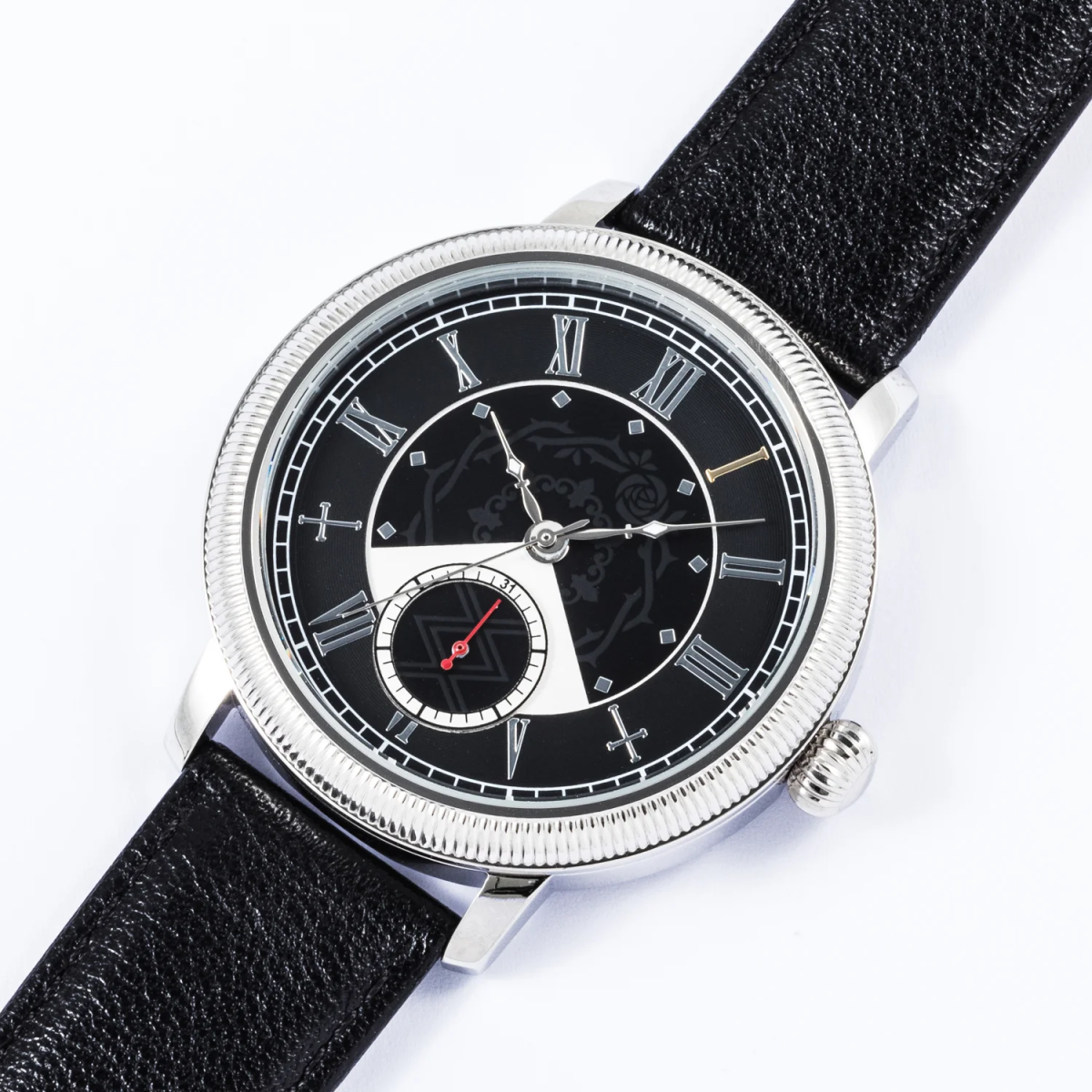 以漆黑色調搭配薔薇圖騰當作錶盤的盤面背景,搭配環繞的羅馬數字記號,四點鐘與八點鐘處特別設計成水銀燈招牌的逆十字圖案,錶背還有配置「薔薇の薇(ゼンマイ)」 的圖案,不過於花俏的設計非常適合日常生活配戴。