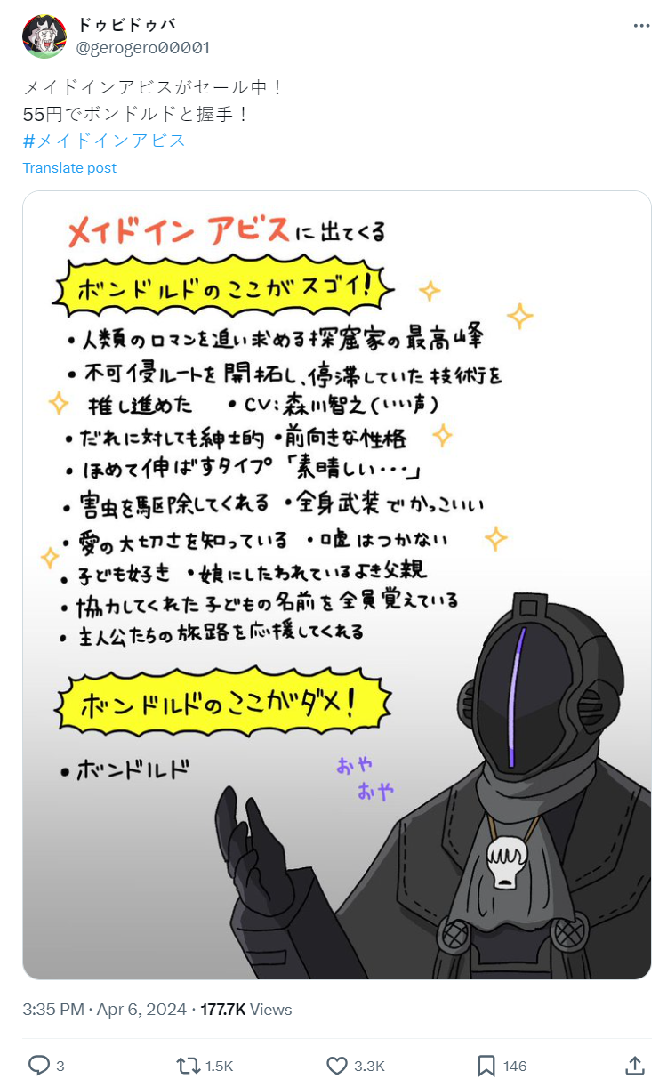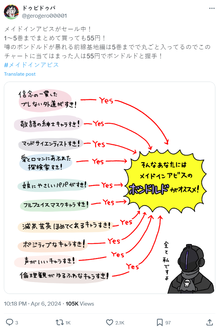 馬上就有粉絲大力推薦,只要 55 日圓就可以從前五集開始踏入深淵之旅,了解所有的愛與人類探險深淵的浪漫,看來這推薦真的很務實阿 ( 咦 ? )