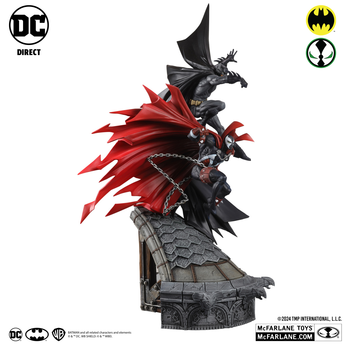 這款同時收錄「閃靈悍將」與「蝙蝠俠」的雕像是來自 1994 年 Frank Miller 編寫、Todd McFarlane 作畫,並由 Image Comics 出版的《Spawn/Batman》,其漫畫封面構圖也致敬了 Frank Miller 繪製的 DC 超級名作《蝙蝠俠:黑暗騎士歸來》。