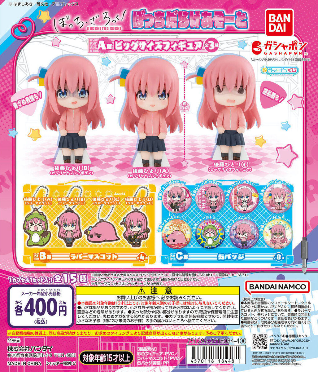 萬代公司轉蛋事業部 GASHAPON 旗下的扭蛋抽獎 GASHAPON 賞(ガシャポンくじ)系列將推出以熱門動畫《孤獨搖滾!》為主題的新商品——「《孤獨搖滾!》小孤獨的收藏系列」(暫譯)轉蛋,參考售價為每轉 400 日圓,預計於 2024 年 04 月第四週開轉!