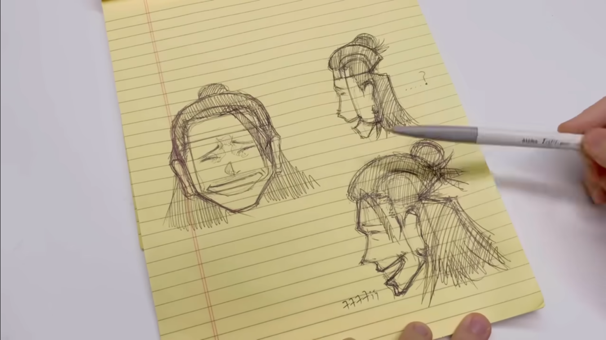 製作前先手繪設計圖,可以看到他的繪圖功力其實也相當不賴,有畫出當時夏油傑在澀谷車站在五條悟前現身的神情。