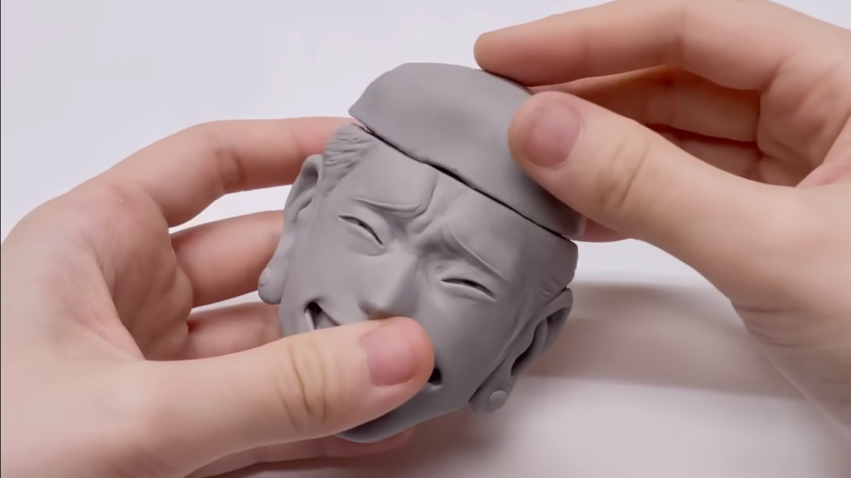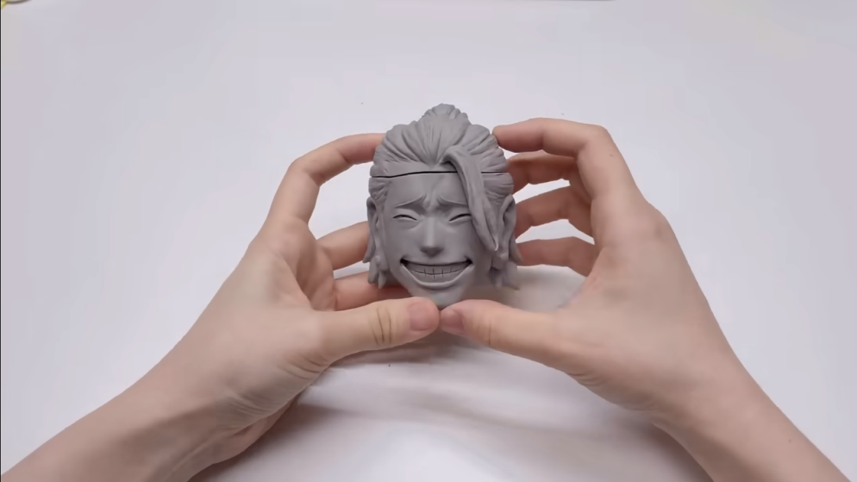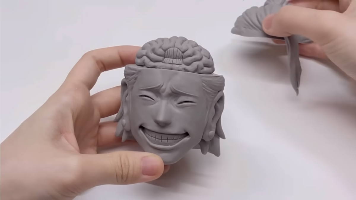 然後開始製作外觀,除了可見招牌的腦袋外,更特別製作了可以蓋上的設計,讓保護殼可以呈現動畫中夏油傑秀出腦袋的效果。