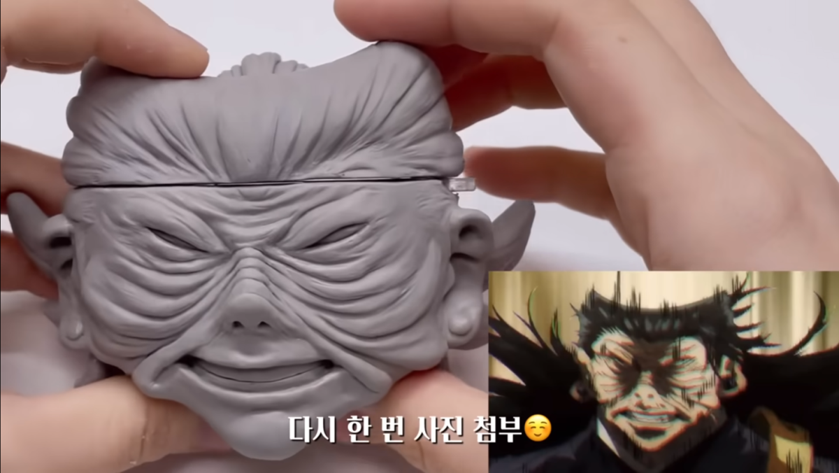 今天來介紹一位韓國的 YouTuber 윤뚜따 yoonddudda,他選擇以《咒術迴戰》夏油傑造型,用黏土手作了兩款 AirPods 保護殼,選擇的造型更是獨具特色,吸引不少網友關注。