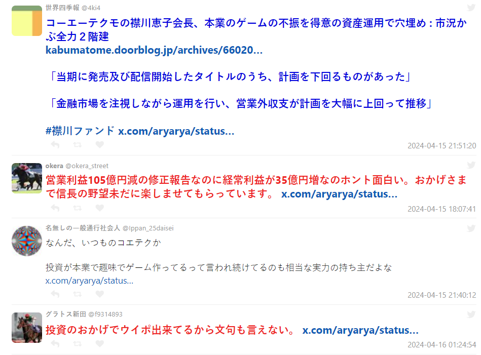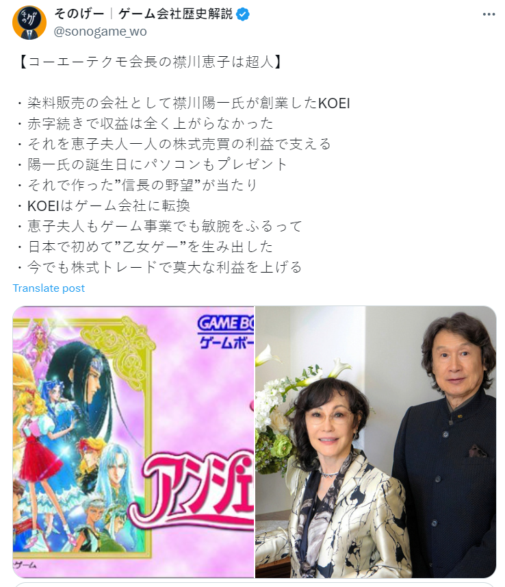才讓近來看似在遊戲業較少出色之作的光榮特摩庫仍在股價跟公司營運上維持良好,也讓不少網友讚賞她的能耐與對公司的貢獻。