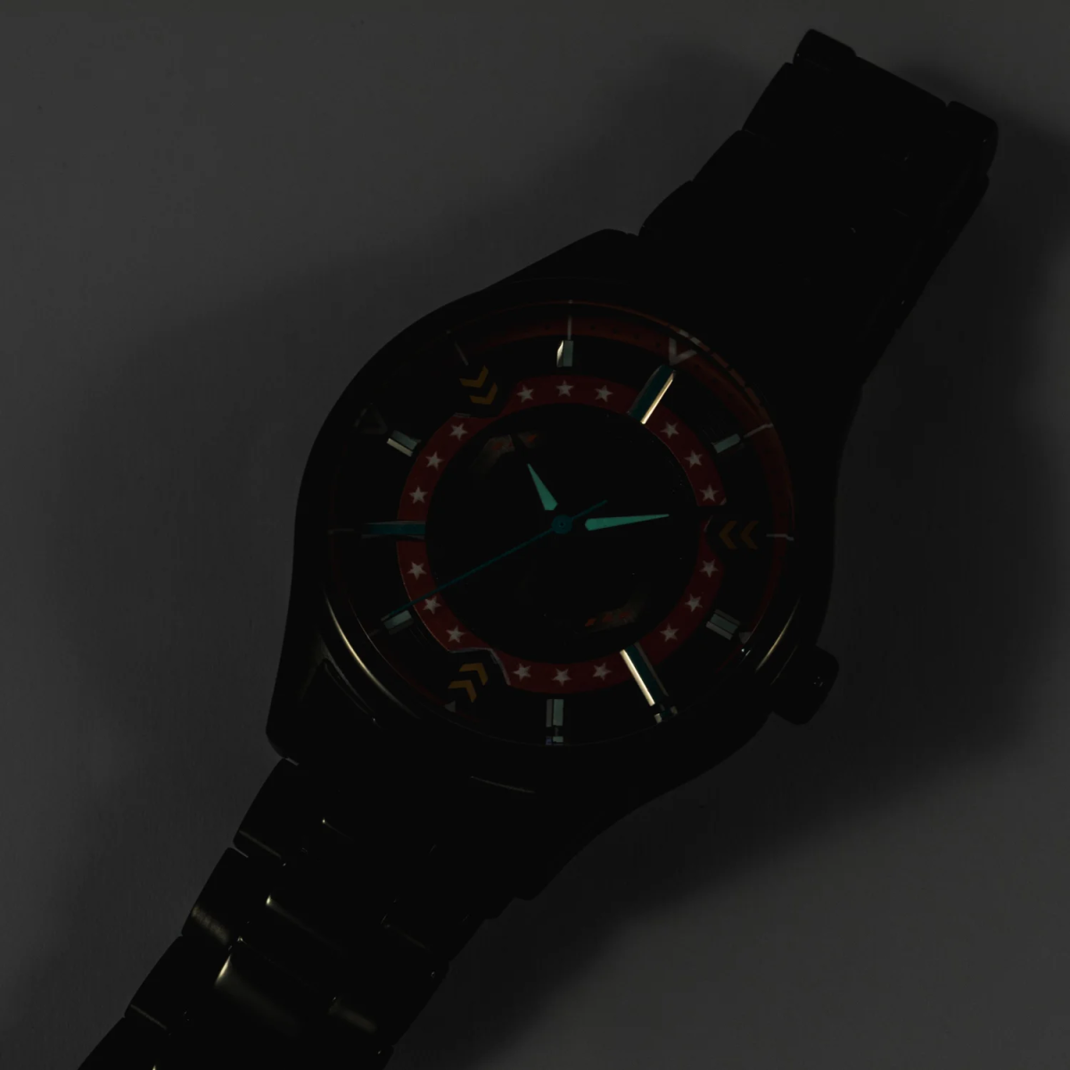 錶盤背景以小鳥遊琪亞拉的劍與盾牌為靈感設計,裏頭還藏有初代服裝帽子的星星圖案,整體設計都有著其代表色的元素。時針分針具有蓄光效果,黑暗中也能辨識時間,錶背還印有「Kotori」 圖案。