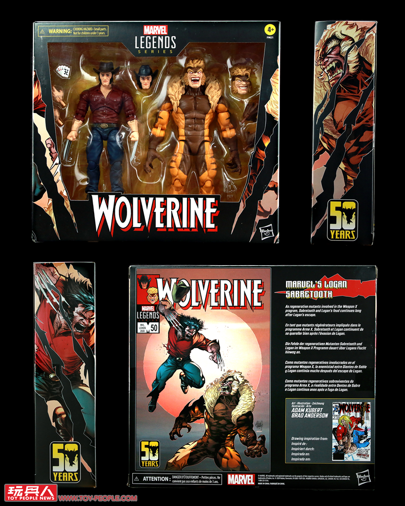 ▼「金鋼狼」與「劍齒虎」(Sabretooth,台灣舊譯作大鋼牙),堪稱是人生宿敵的命運雙人包。盒背收錄了畫師亞當·庫伯特(Adam Kubert)的新版插畫,致敬1989年的《金鋼狼》第10期漫畫封面。