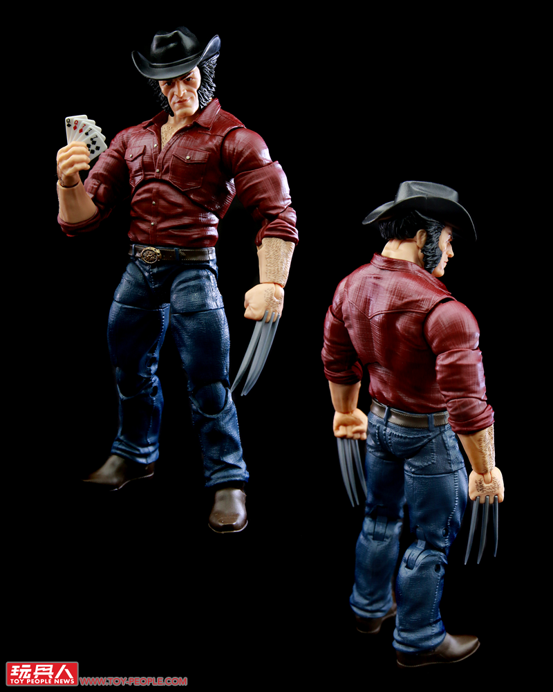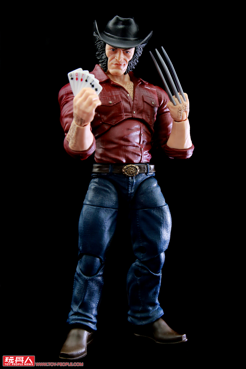 ▼這款狼叔採用了休閒風格的便服裝扮,搭配瀟灑的牛仔帽,並附有一手七葫蘆的五張一體撲克牌配件。