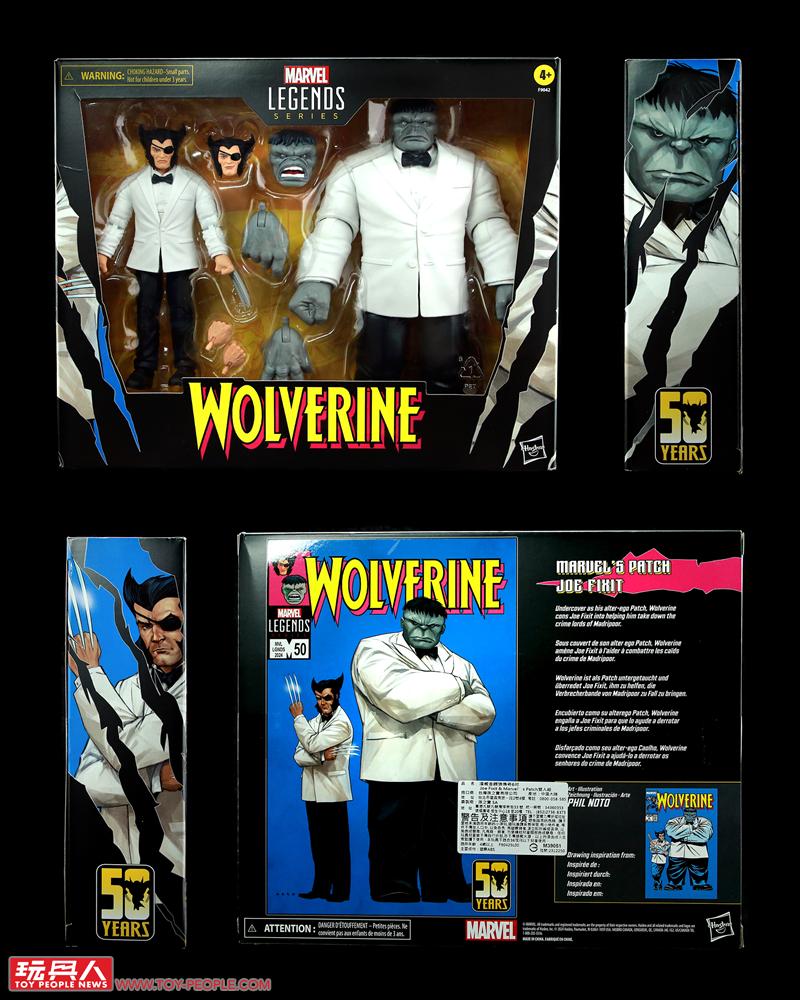 ▼「眼罩」(Patch)與「喬‧菲希特」(Joe Fixit),四款雙人組中尺寸最為巨大的一包。盒背印有畫師菲爾·諾托(Phil Noto)的新版插圖,致敬1989年的《金鋼狼》第8期漫畫的封面。