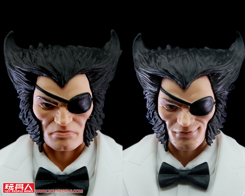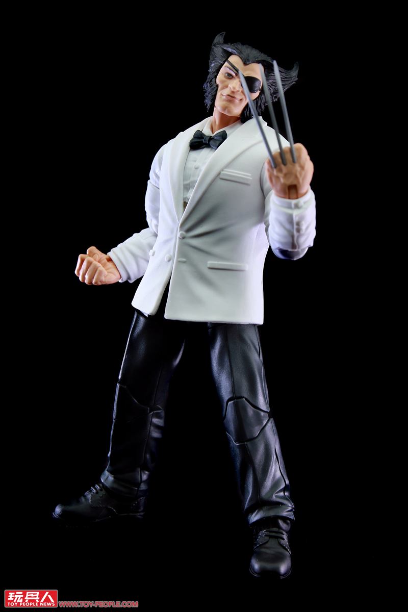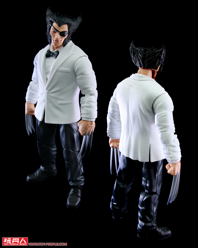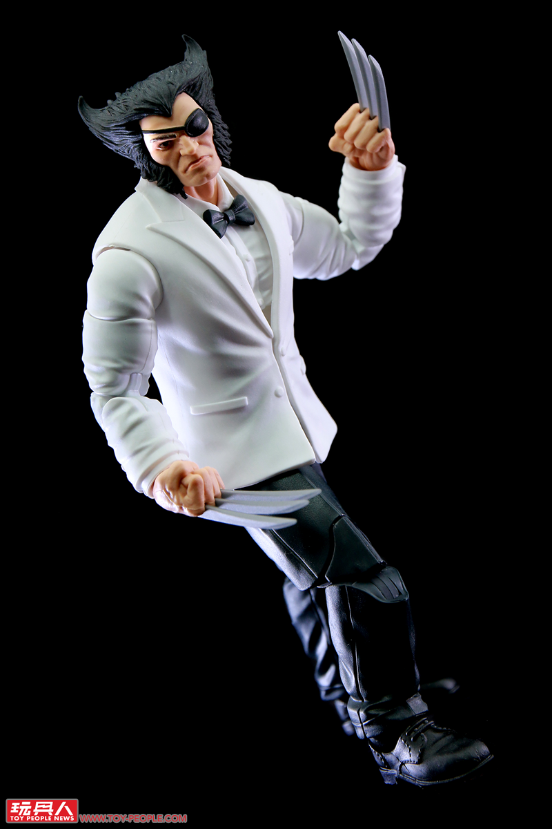 ▼眼罩,金鋼狼在犯罪國度馬德里坡(Madripoor)時,隱身於公主酒吧(Princess Bar)的化名與身份,配戴名符其實的眼罩和頗為搶眼的白西裝外衣,這也是孩之寶首度將這個造型立體化的版本。