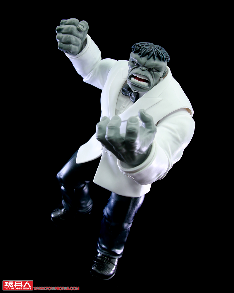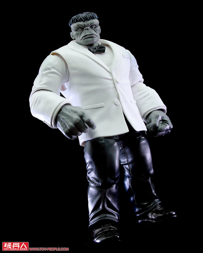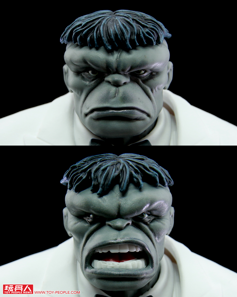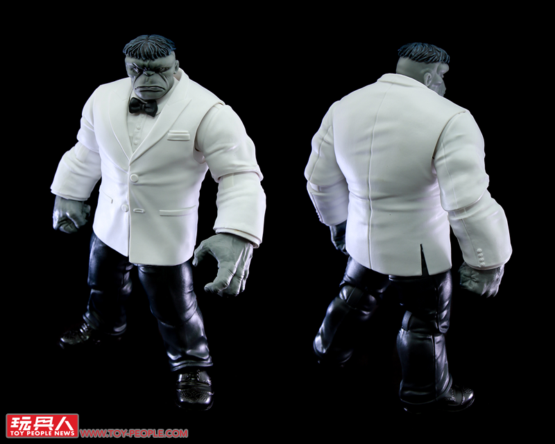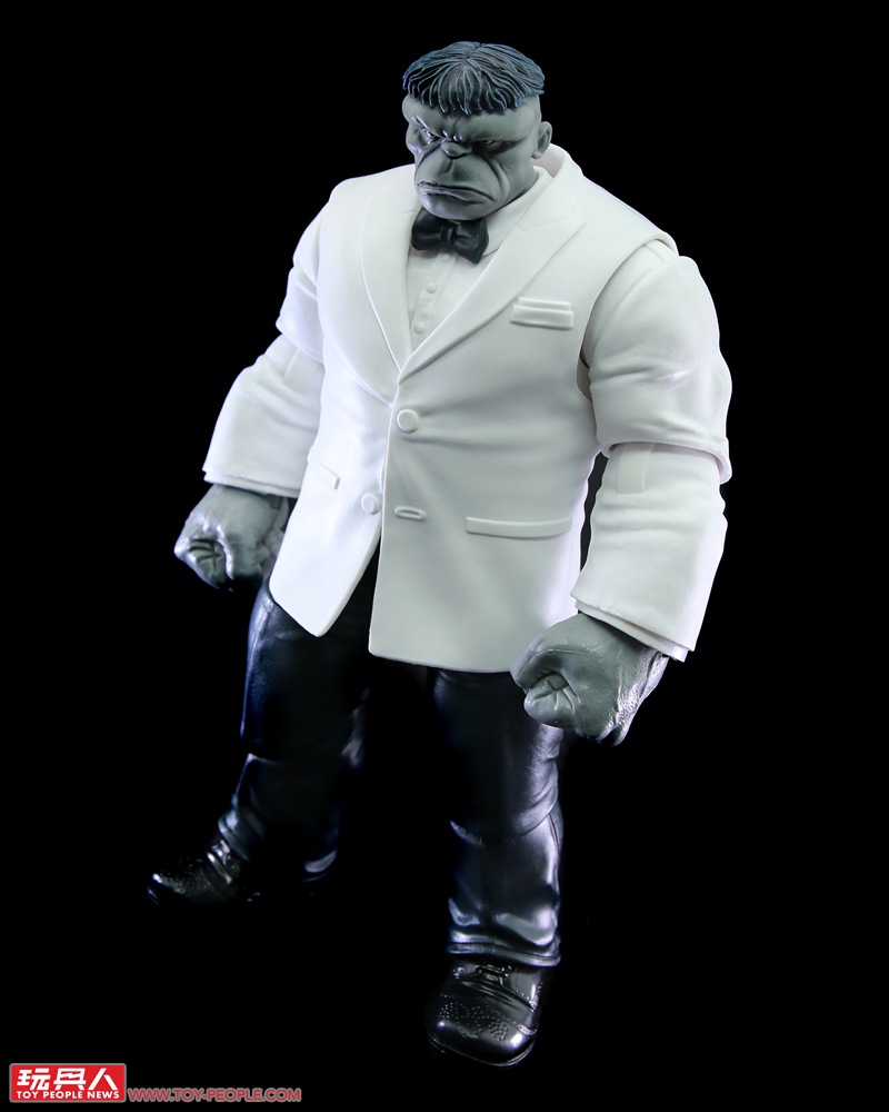 ▼喬‧菲希特,布魯斯‧班納(Bruce Banner)最初接觸到伽瑪雷射所產生的灰浩克(Hulk)人格,比起力量滿點的莽漢綠浩克,喬的人格更為狡詐聰明,也更加地陰險殘忍。本次的人偶取材自漫畫,與眼罩狼叔一樣在馬德里坡時的白西裝造型,不過...熟悉漫威傳奇的玩家應該都很熟悉這個來自金霸王(Kingpin)的素體吧?
