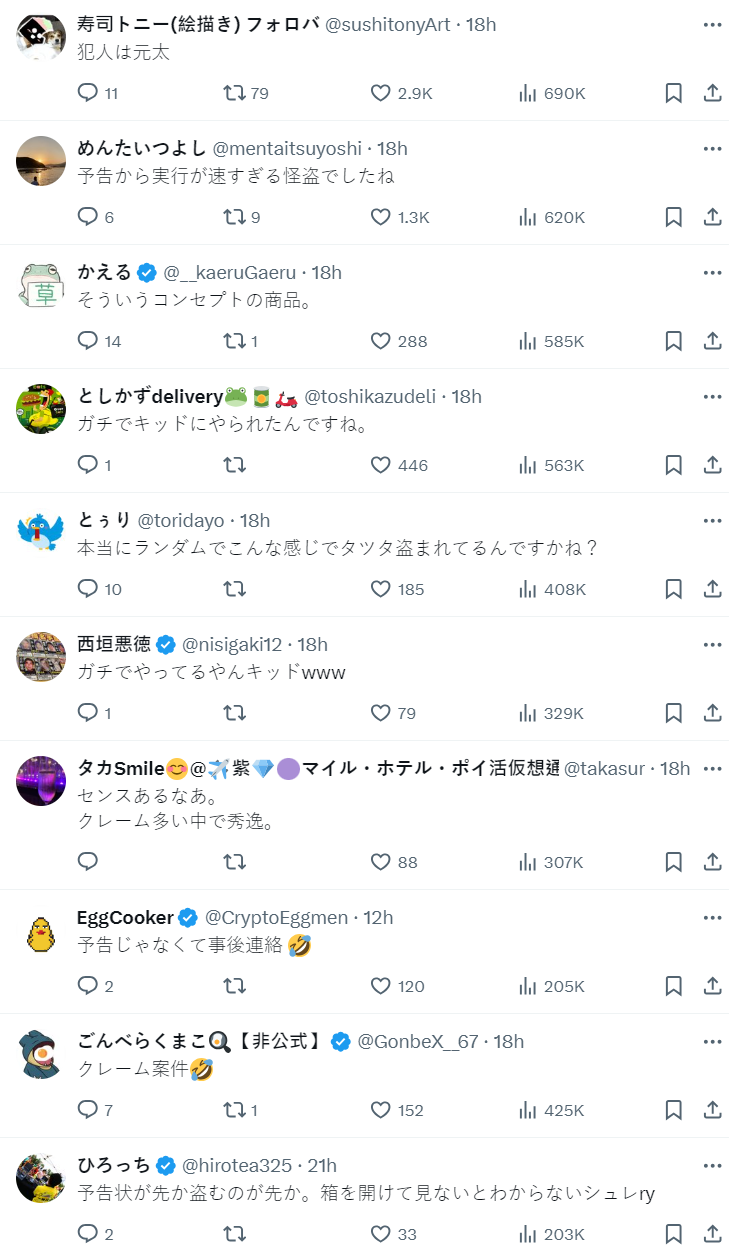 網友也紛紛留言,有人喊到 : 「犯人應該是元太吧」、「果然是基德蓮漢堡都要發預告信,不過這算是事後告知了吧w」、「原來基德也兼職漢堡神偷」、「看起來又有案件要發生了吧 ( ? )」