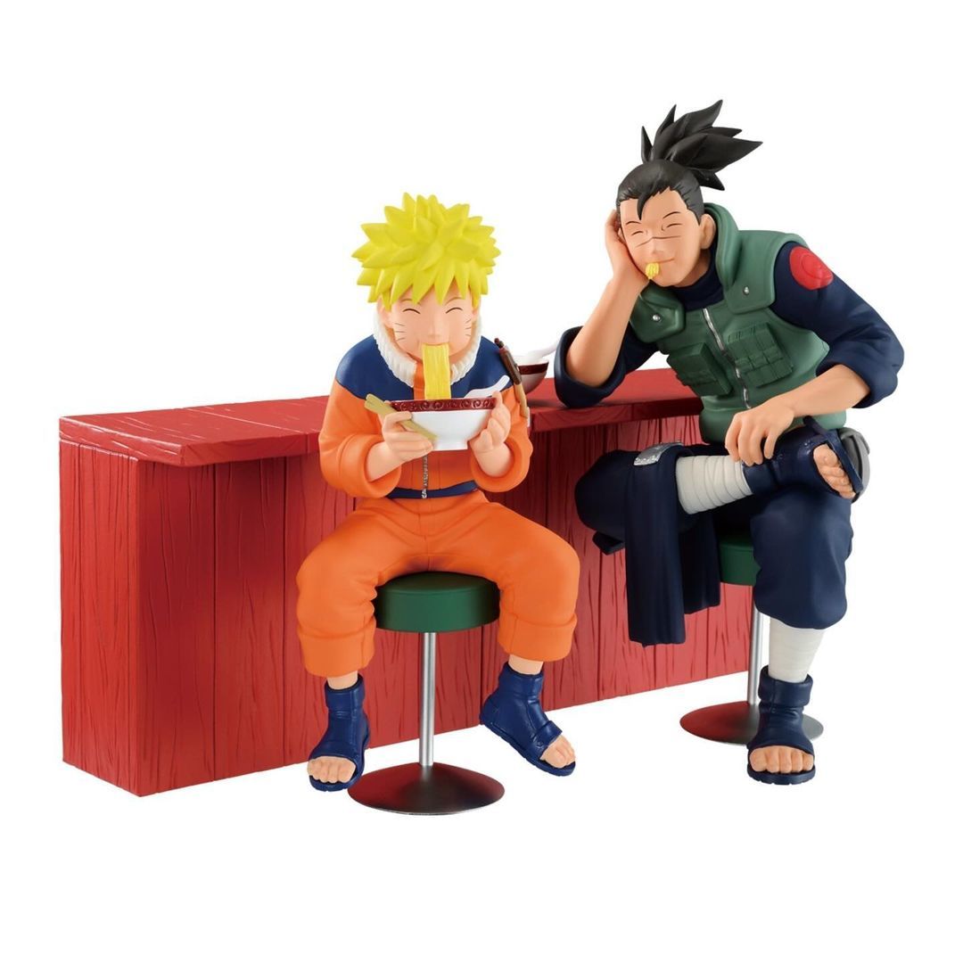 BANPRESTO景品『NARUTO-火影忍者- 漩渦鳴人模型-在一樂拉麵的片刻-』、『NARUTO-火影忍者-海野伊魯卡模型 -在一樂拉麵的片刻-』,以漫畫單行本第 16 集的封面插畫為基礎,將伊魯卡老師請鳴人吃一樂拉麵的場面立體化!還原鳴人捧著拉麵碗,直接用嘴巴吸滿拉麵的可愛造型,瞇眼享受的表情也很生動!伊魯卡老師充滿慈愛的笑容搭配嘴角的拉麵,超級可愛~兩款皆附有一樂拉麵的木吧檯和座椅,務必要師徒兩人一起組合收藏!