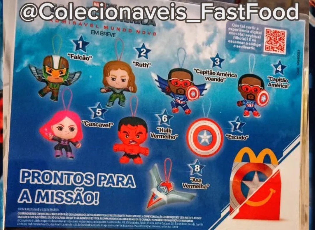 根據網友在Reddit所分享的資訊,這是來自於巴西麥當勞快樂兒童餐的《美國隊長4:美麗新世界》主題系列玩具,當中除了能夠看到華金·托雷斯接棒的「獵鷹」、「美國隊長」山姆·威爾遜、薩布拉...等角色外,可以看到「紅浩克」也列入該系列的玩具角色之中。