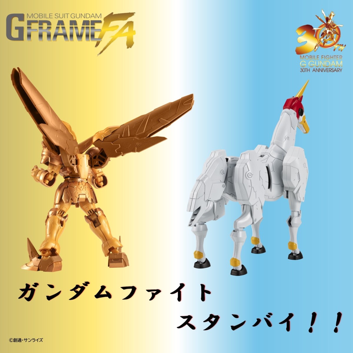 為紀念動畫《機動武鬥傳G鋼彈》播映 30 周年,由日本萬代玩具公司食玩事業部 BANDAI CANDY 所發行的人氣食玩商品『機動戰士鋼彈 G-FRAME FA』今日預告了最新商品「宗師鋼彈(明鏡止水)」、「風雲再起」將於近期開放預購的消息。