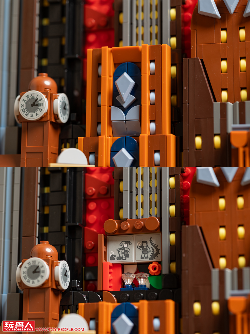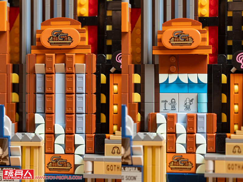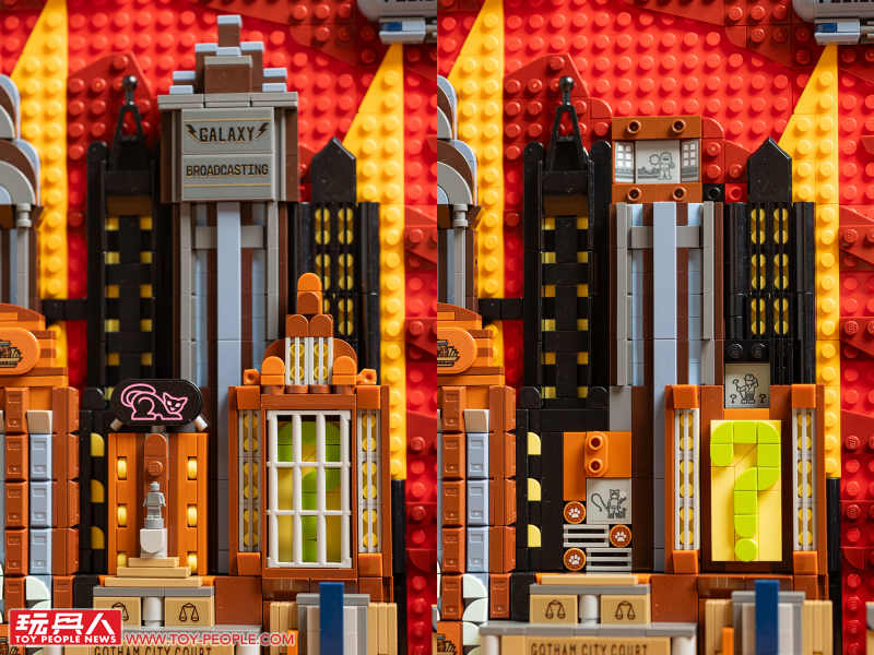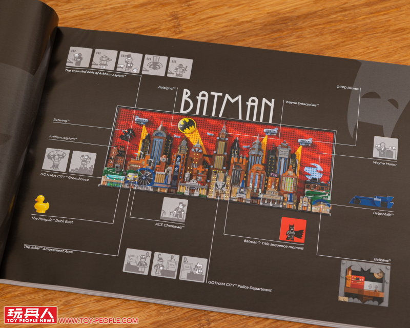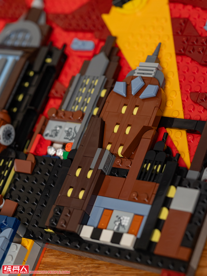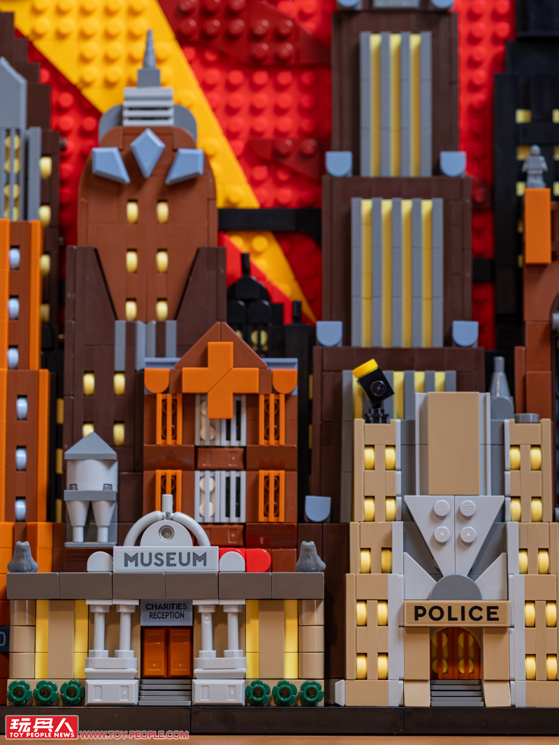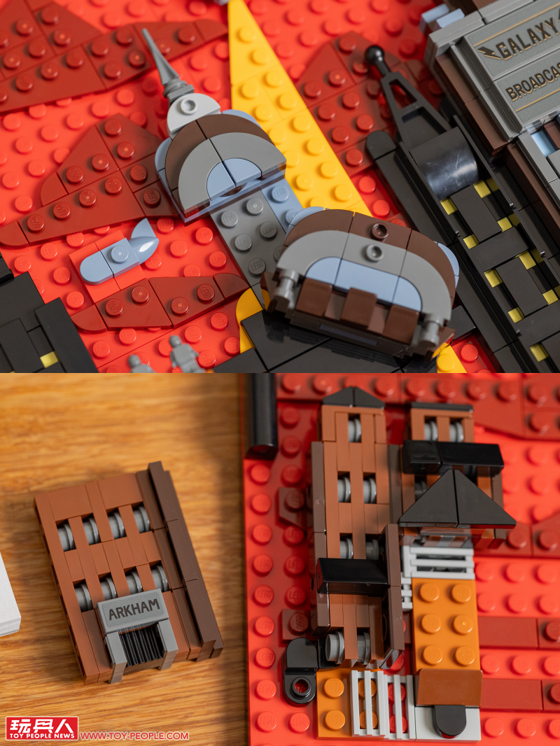 這組高譚市天際線所呈現出的優秀視覺效果,不只是因為那以黑色底版技術為主軸的配色方案,從建築輪廓的還原、視覺上的遠近處理,到經典地標的層層結合,每一個環節都相當用心,更不用說為了隱藏劇中角色而做出的堆砌結構了,這一款真的可以用「獻給動畫版蝙蝠俠迷的一封華麗情書」來形容!其中包含的人偶 4 位、加上貼紙代表的角色 27 位,在一邊玩的過程中還可以一邊回味他們在動畫中的登場與劇中表現,對於小時候曾經看過這部作品的玩具人來說,這段組裝時光肯定是長大之後的我們最棒的精神糧食。