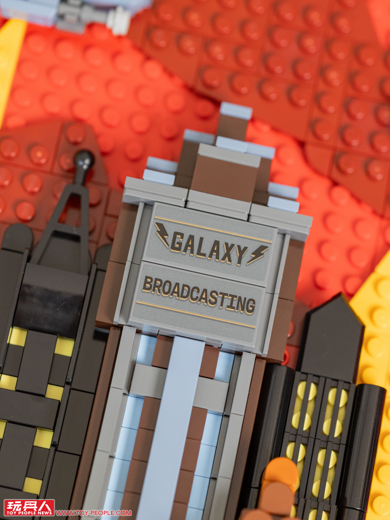 ▼ 為了重現黑色底版技術、以及在頗為平面的作品中製造出立體感,本作大量採用了這種黑色+鵝黃色的零件組合,描繪出位於遠方大樓燈火通明的景色、遠方的飛船也變得更小,超可愛。