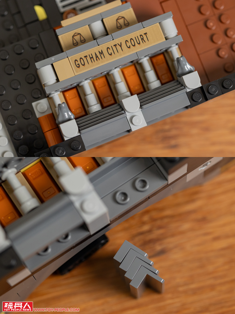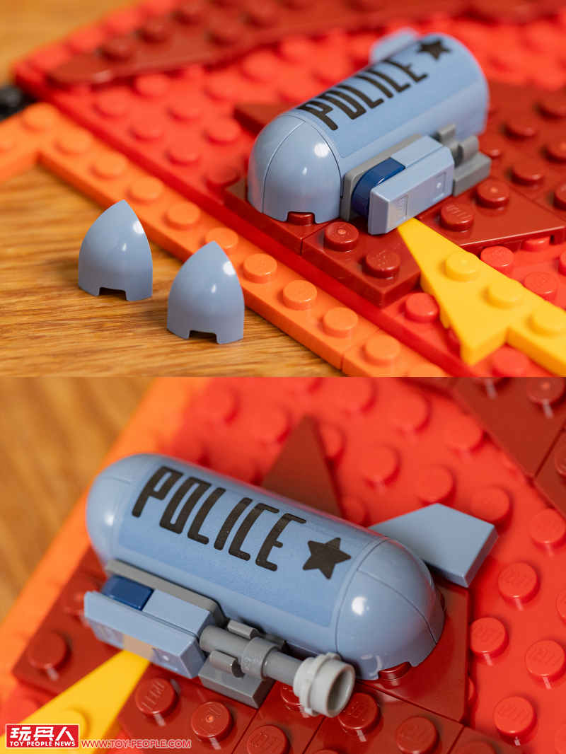 雖說這次的高譚市天際線設置了多個可以在完成之後輕鬆拆下、看看內部隱藏秘密的設計巧思,但還是有不少精彩的堆砌環節會在拼完之後被遮擋,所以我們就來看看這些美妙的拼搭過程吧!首先就是高譚警局的飛艇、在第一集《On Leather Wings》開篇就出現的 Gotham Air One!利用弧形零件勾勒出的漂亮弧度十分迷人。