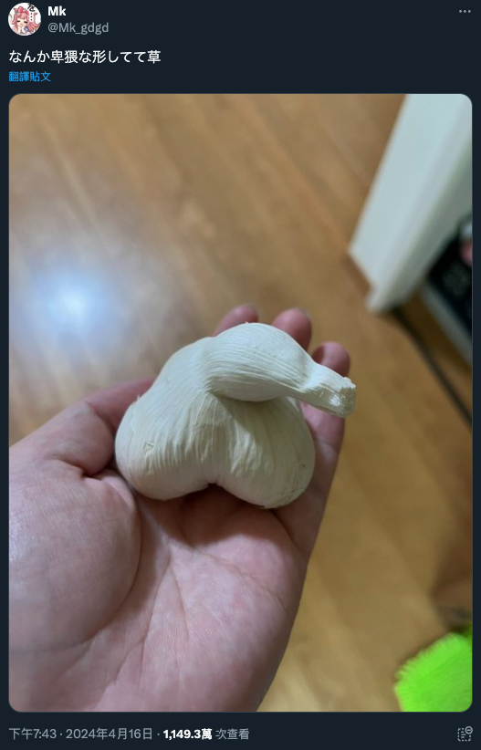 然而⋯⋯世界就是這麼奇妙,幾天後,有位X網友「Mk」發文,表示他找到了奇怪形狀的大蒜。