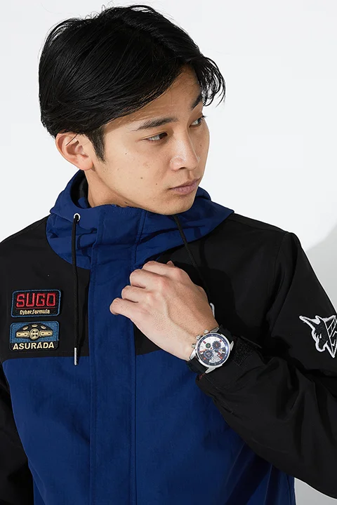 設計上以取自主角風見隼人所穿著的賽車服以及阿斯拉為概念設計,配色跟作品元素都點綴在商品上,不論是手錶或外套都算是非常好搭配的款式。