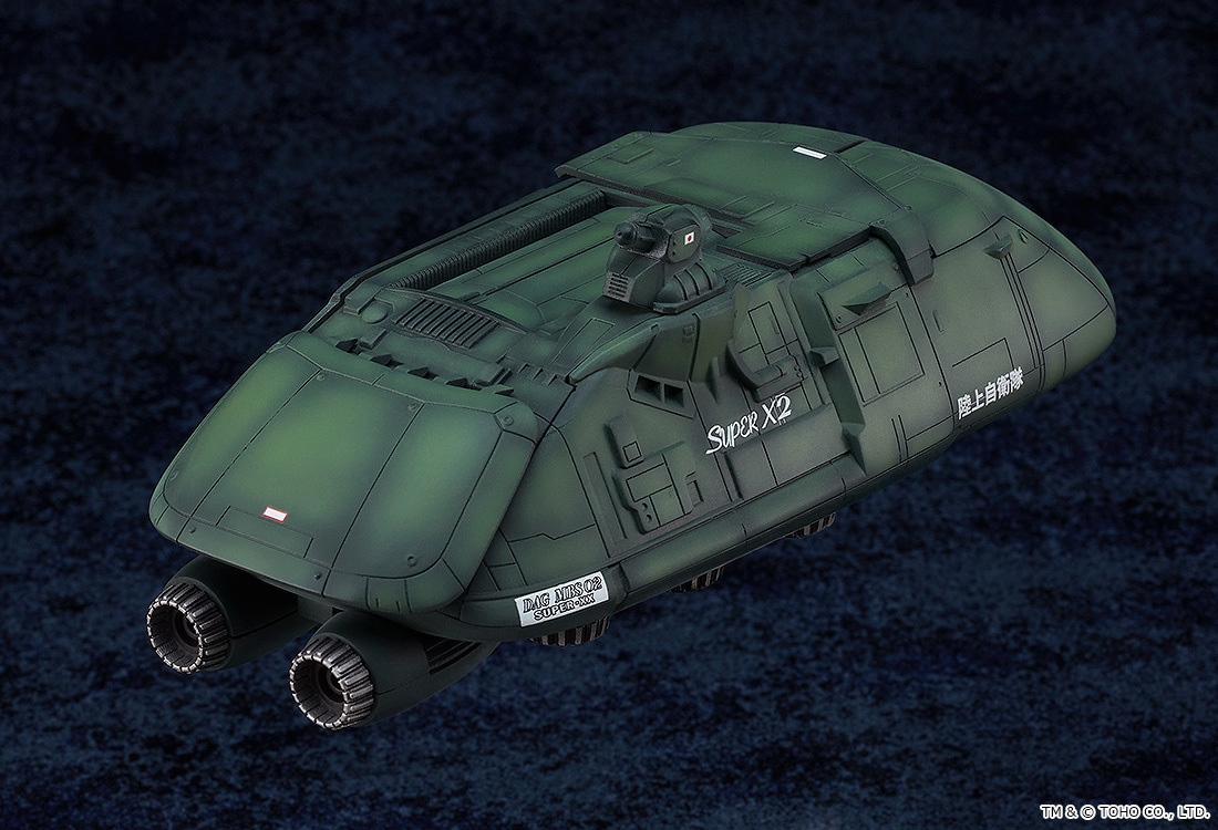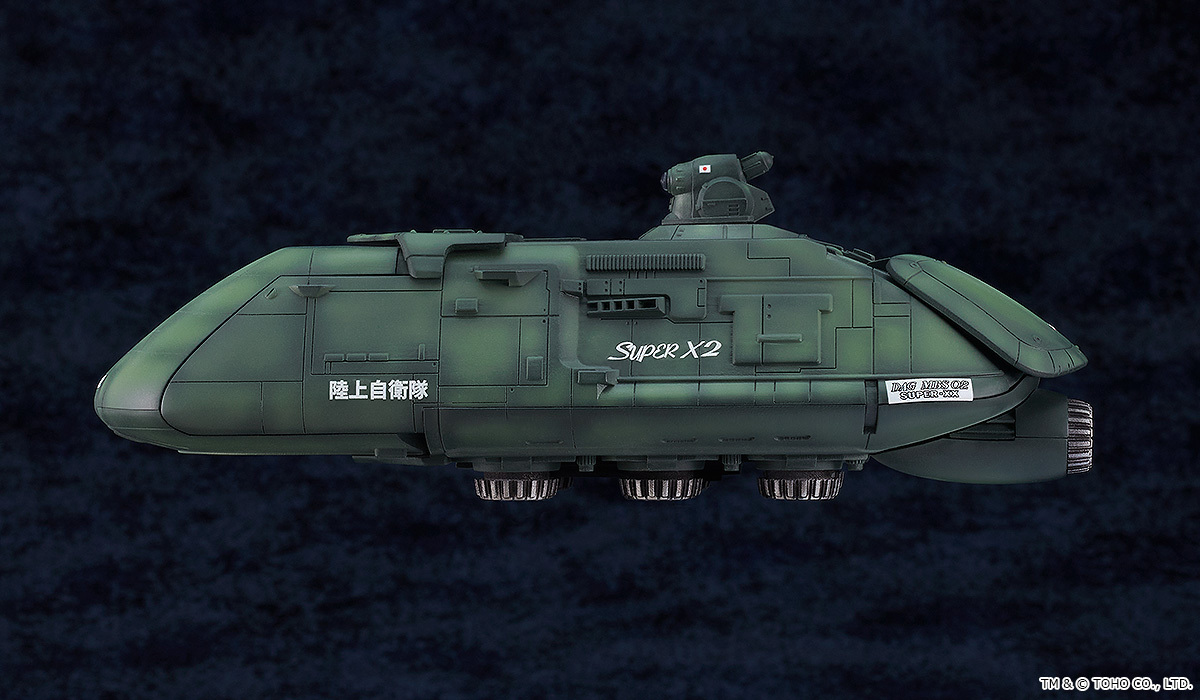 登場於電影《哥吉拉VS碧奧蘭蒂》的對抗哥吉拉主力武器戰艦「Super X2」也在 MODEROID 組裝模型系列登場!組裝後尺寸全長約 175 mm,還原扁橢圓狀的潛艦外型,搭配各成型色、上色完成零件及水轉印貼紙,組裝即能重現近似劇中外觀的完成度。機體前方用來反射哥吉拉射線的武裝「火鏡」,使用鍍層零件與透明零件的雙重結構組成,並設計有可連動伸縮內部中央零件的展開機構!機體頂部的艙門可打開,按下後導彈發射台可上升到發射位置,並附屬有可自由拆卸的超級導彈!
