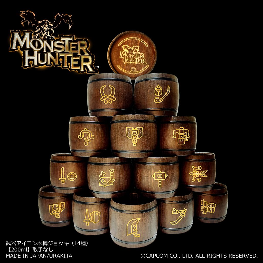 「URAKITA⼯房」與許多動漫作品合作過,舉凡《狼與辛香料》、《魔物獵人》等皆有合作,都以酒的容器為合作產品,也是品牌最自豪的商品之一。純木打造有著原木的香氣,配合啤酒喝起來有不同的風味,配上作品的雷射圖案,有種尊貴的氣息在。