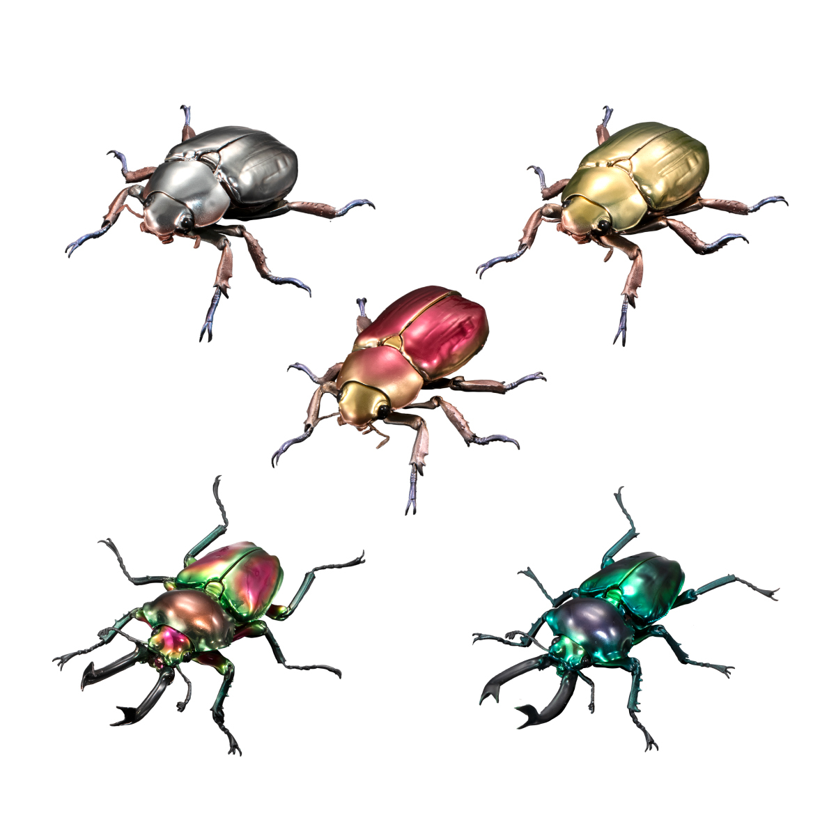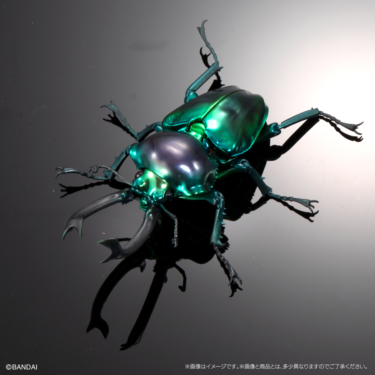 擁有最頂級的尺寸、造型與可動設計的「生物大圖鑑Ultimate(いきもの大図鑑アドバンス)」,相較「生物大圖鑑」系列,商品更具擬真細節和精緻塗裝。本次推出的「生物大圖鑑Ultimate 白金甲蟲與彩虹鍬形蟲 展示架套組」,收錄有銀光閃閃的珍貴甲蟲:「白金甲蟲(銀色)」以及白金甲蟲(金)、白金甲蟲(紅) 三種色澤,尺寸約 60 mm,21 處可動,採用電鍍來完美重現光澤,重現極其美麗、可以拿來照鏡子的金屬色彩!另外還有彩虹鍬形蟲 皮卡、彩虹鍬形蟲綠色 皮卡,對標本進行 CT 掃描,複雜的觸角大顎等構造徹底複製,將細節完全再現。