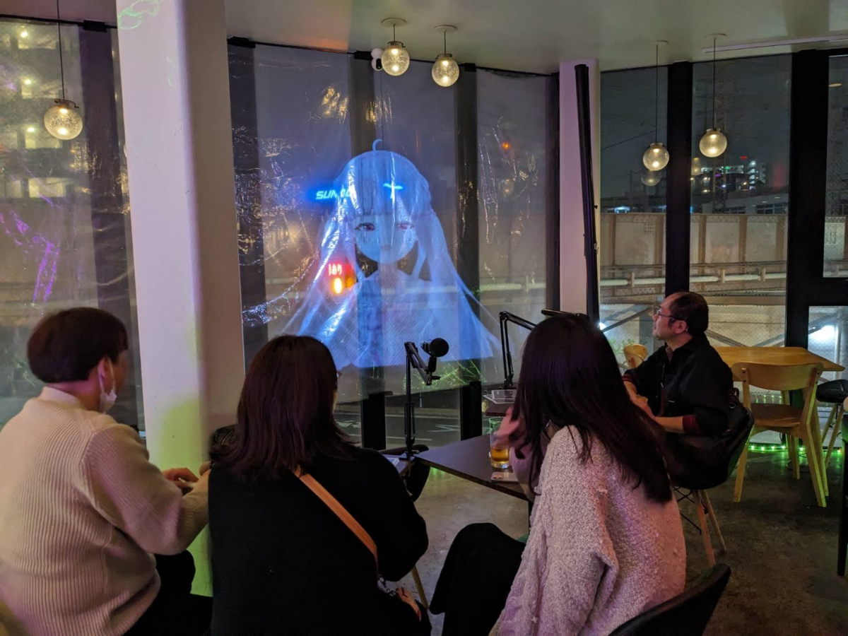 店內會有來自各方的 VTuebr 進駐,不止會跟客人交談,現場甚至還有會有歌唱演出,有點像駐唱歌手的概念,能跟所有前來的顧客互動。