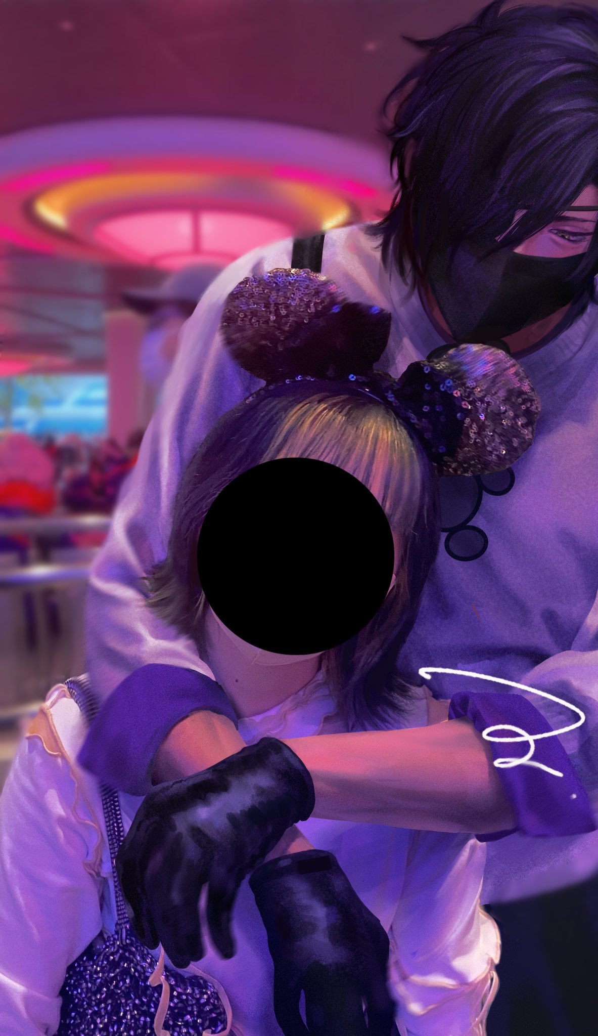 其實這也並非是推主自己頭一次這麼做了,在2022年的時候,她也曾把去遊樂園的照片,畫上自己的夢角,表現出好像正在跟夢角一起約會一樣,要勾肩搭背,輕輕摟著脖子做點親密的事情都不是問題——只要你的畫工夠好,要跟夢角擺出什麼樣的姿勢都絕對沒有問題!