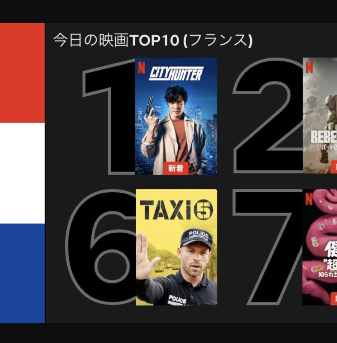 近日在法國的 Netflix 收看排行,真人電影《城市獵人》也成為觀看首位,連鈴木亮平都發文感謝法國粉絲的愛戴。