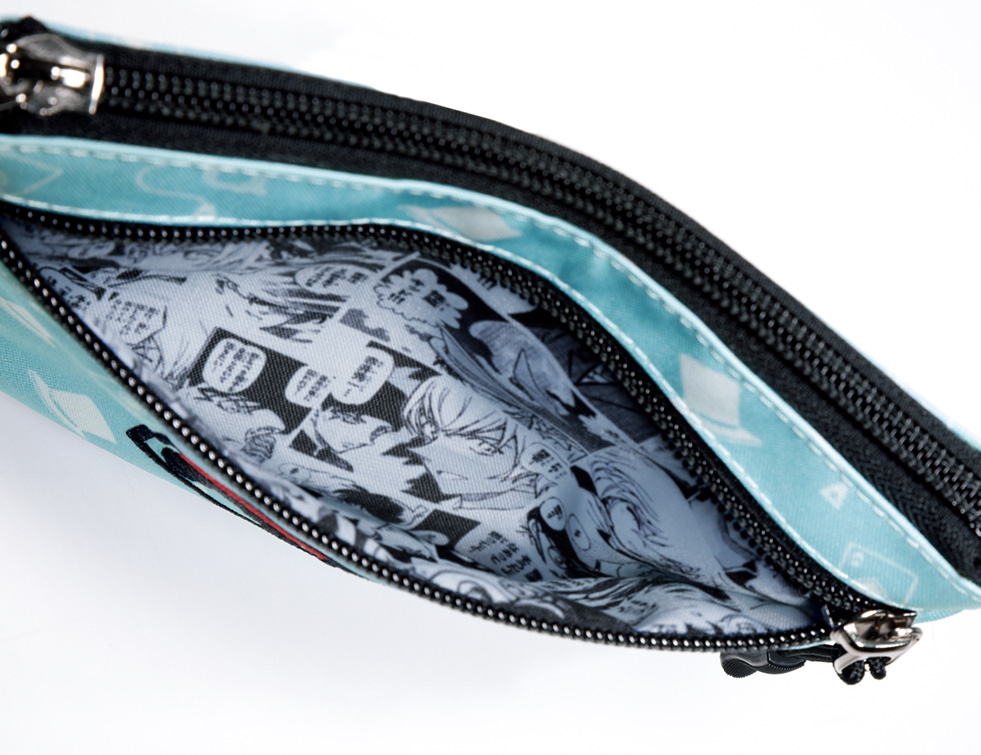 推出六個角色款式 : 江戶川柯南、服部平次、灰原哀、赤井秀一、安室透與怪盜基德,兩層拉鍊空間,內襯配置漫畫的滿版圖騰。