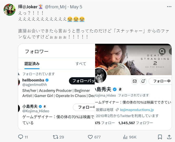 活動期間的高人氣 Cosplay 連遊戲製作人小島秀夫都追蹤他,讓他感到不可思議。