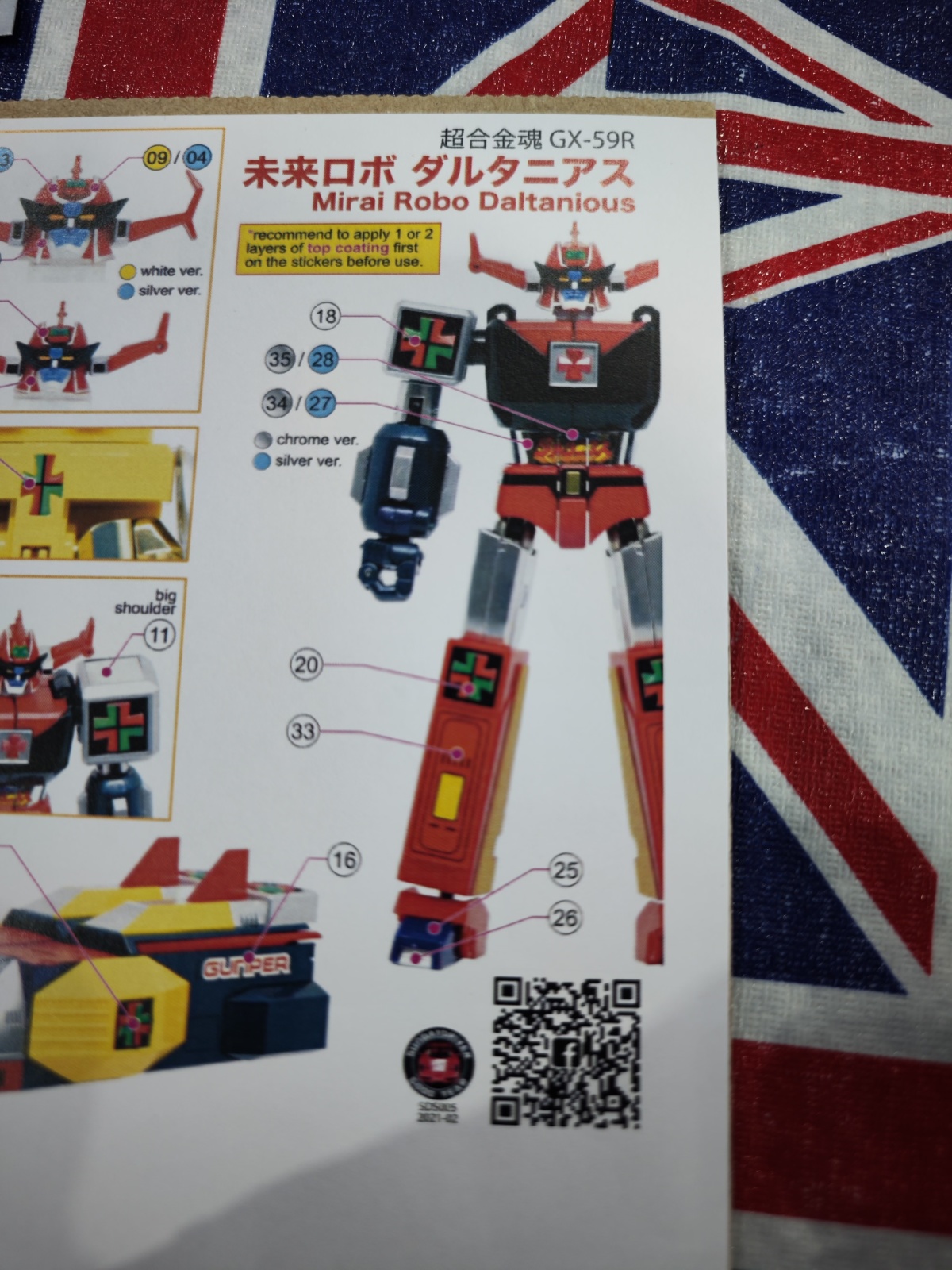 突然記得,很久之前跟老友(他是平面設計師也是一位玩具愛好者)買了一份他自製的合金魂未來合體(金毛獅王)的仿舊合金貼紙,等有時間就攪攪佢