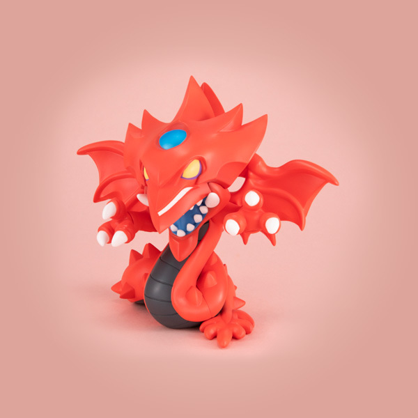 變形模型「MEGATOON 歐西里斯的天空龍」,依據卡面插畫製作出可愛的卡通風格,將擁有紅黑配色軀體、搶眼巨大雙翼的天空龍以二頭身的比例重新詮釋!化為卡通風格後,尖銳的獠牙和威嚴的眼神都變得親切可愛~頭上的寶石也施以金屬塗裝;透過約 13 公分的小巧尺寸,讓人感受卡通怪獸卡的可愛魅力!