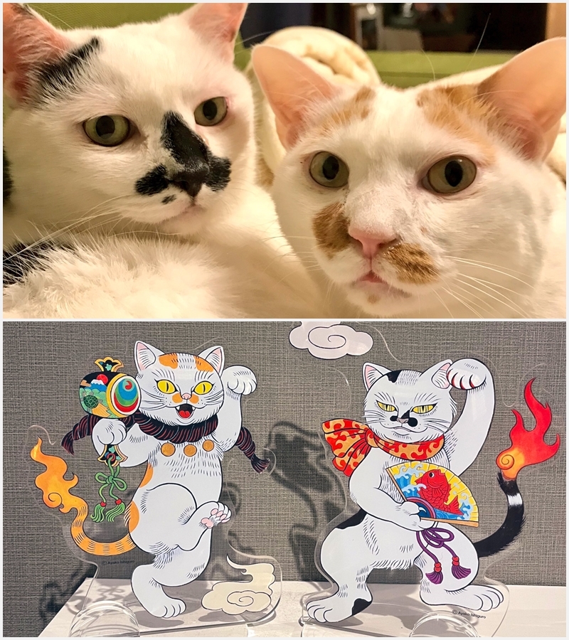 ▼石黑老師的兩隻愛貓てんまる(左)和とんいち(右),牠們偶爾會出現在石黑老師的作品中。