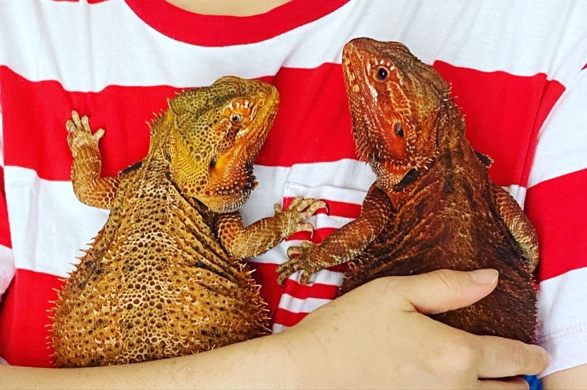 ▼除了兩隻愛貓,石黑老師也飼養了蜥蜴オクヤス與フリオ。