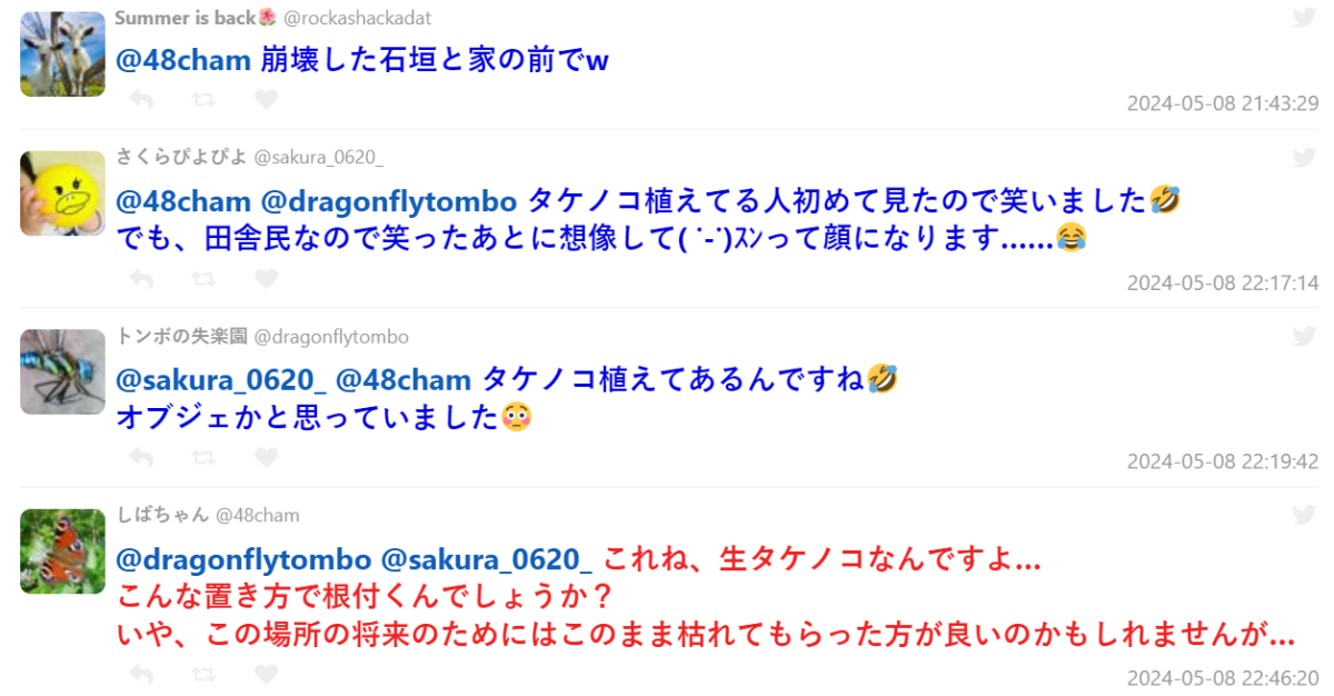近日日本 X 上有推主貼出在街道外別人家中的庭園,看到種植「竹筍」的現象,看起來這些竹筍並不高,幾個整齊的種在土裡。困惑這到底安不安全,也引起網民討論。