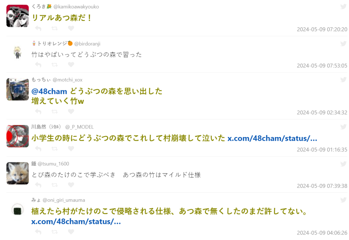 更有玩過《動物森友會》系列遊戲的網友點出,基本上玩過就知道竹筍的能耐了,村子都被竹子入侵啦 QQ。