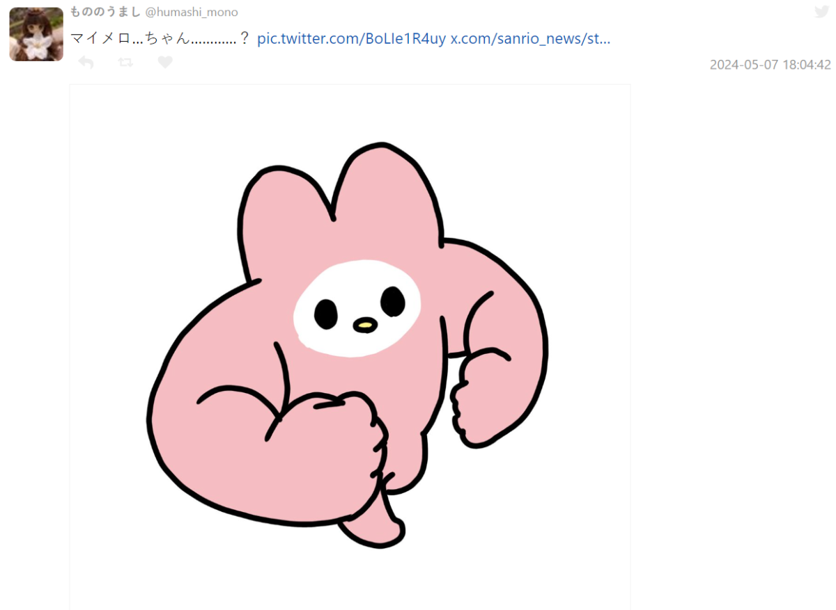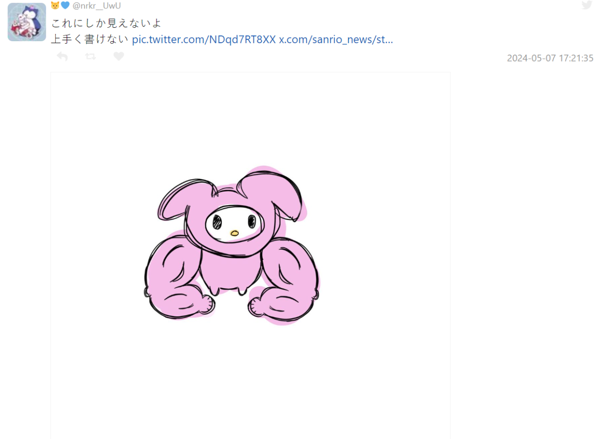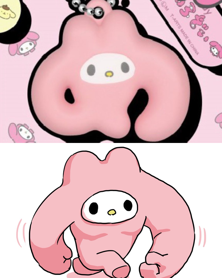 裡面最被受到關注就是美樂蒂這個外型,看起來像是肌肉健美模樣,變成網民二創的對象。