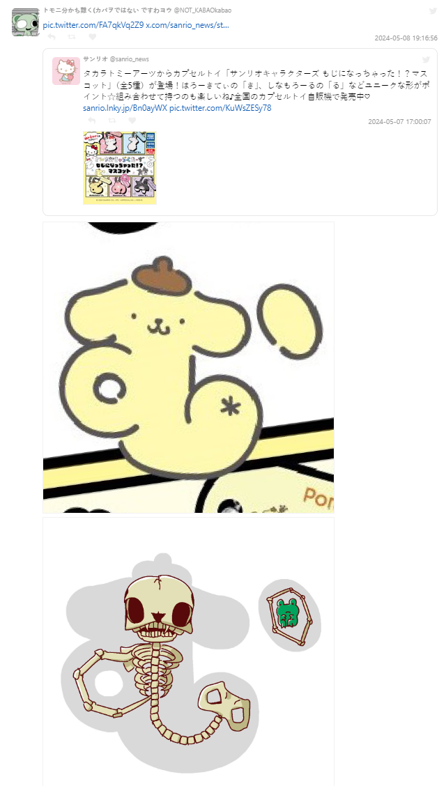 可能也沒想到這個假名跟三麗鷗角色的趣味結合,結果變成網民二創的靈感,或許有機會...可以看到這系列繼續推出更多商品吧 www。