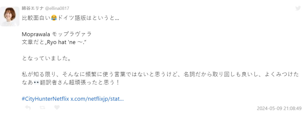 其中最受到矚目的,就是鈴木亮平親自設計的「爽歪歪舞」,結合日本裸體舞蹈跟健壯的體態,搭配冴羽獠的角色性格,可說是在眾多改編作品中獨樹一幟。近期 Netflix Japan 也貼出各國對「爽歪歪舞」的翻譯,讓不僅日本與世界各地了解到底有何差異,也成為熱議話題。