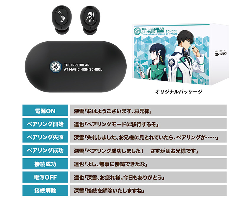 這次宣布與本季播出第三季的動畫《魔法科高中的劣等生》合作,推出聯名款的真無線藍牙耳機,以主角兄妹司波達也 & 司波深雪為主題。售價為 20,000 日圓,於今日 ( 4/18 ) 起可於 ONKYO 官網訂購。