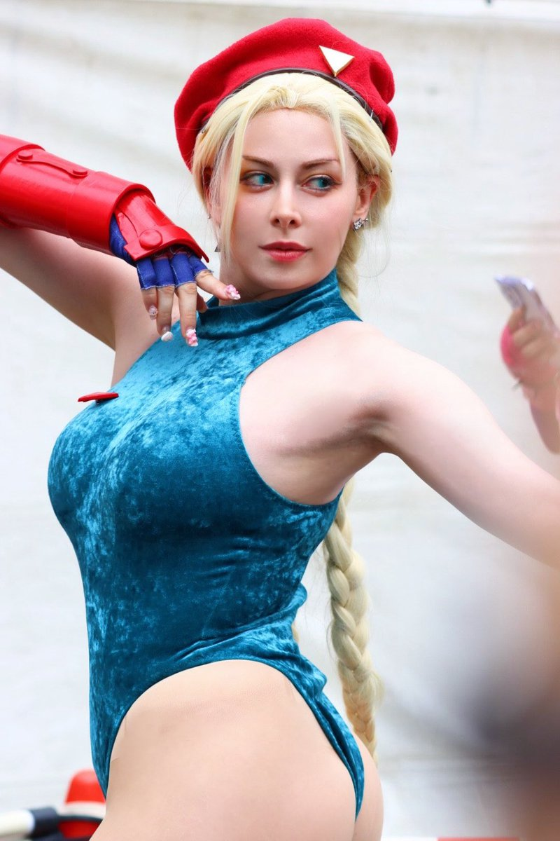這次選擇《快打旋風》的倩咪,也是因為玩遊戲時就很喜歡這個角色,決定用上自己白皙的皮膚與金髮優勢來出角,服裝並選用招牌的高叉緊身衣形象,搭配自身健美的好身材,在活動現場可說是殺遍鏡頭的存在。